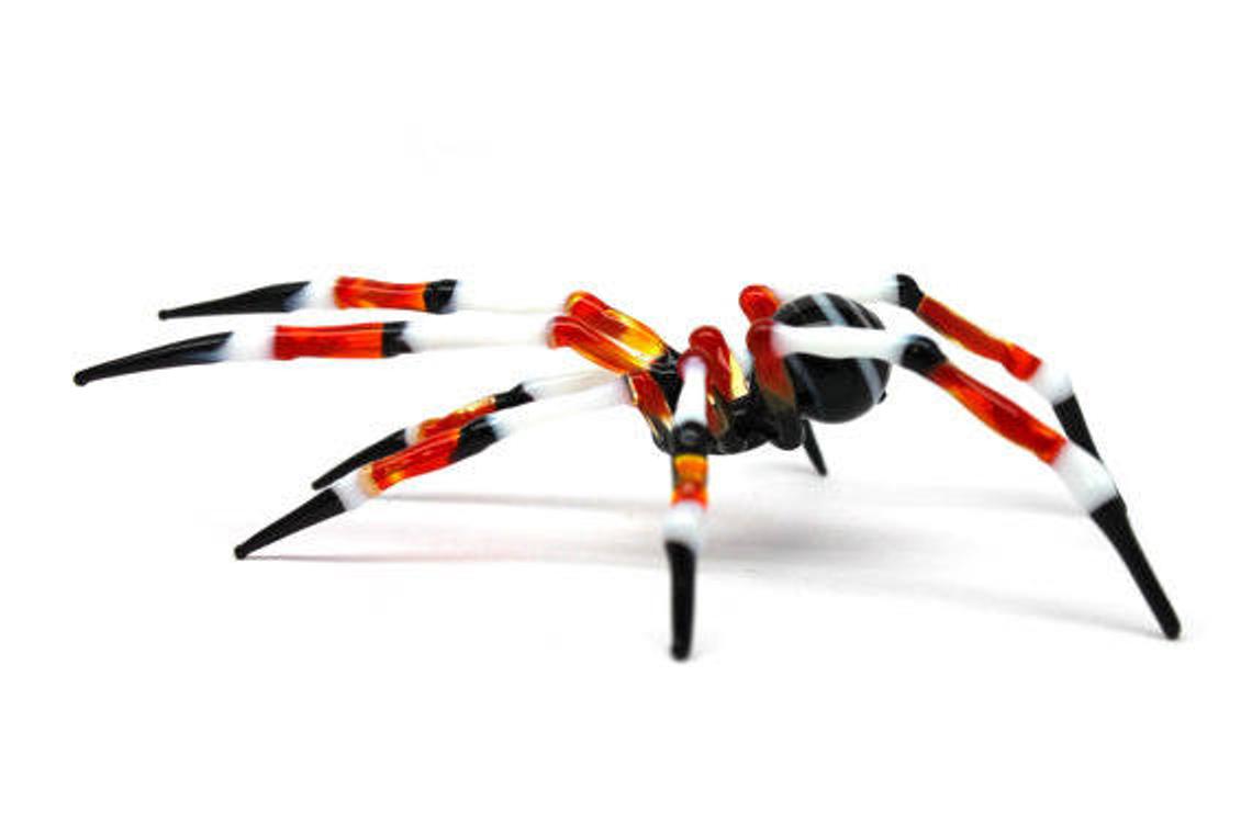 Red White And Black Glass Spider Figurine – Murano Lampwork Art