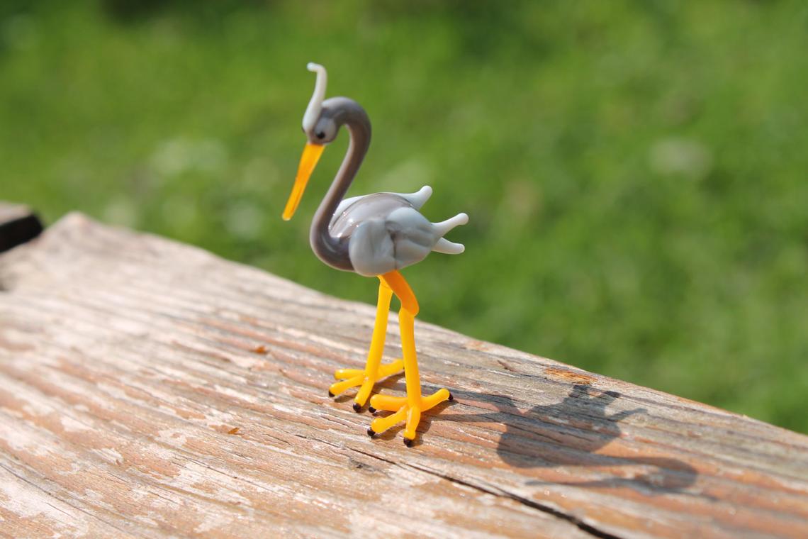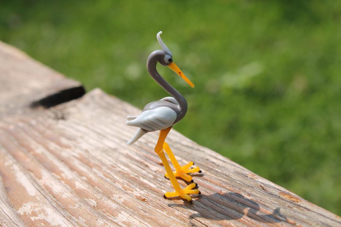 Add a touch of elegance to your decor with this handmade glass heron figurine.