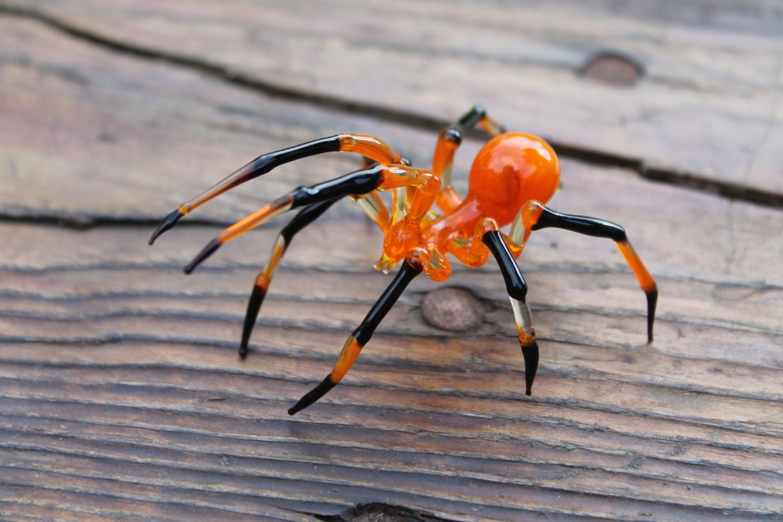 Orange And Black Glass Spider Figurine – Halloween Art Sculpture