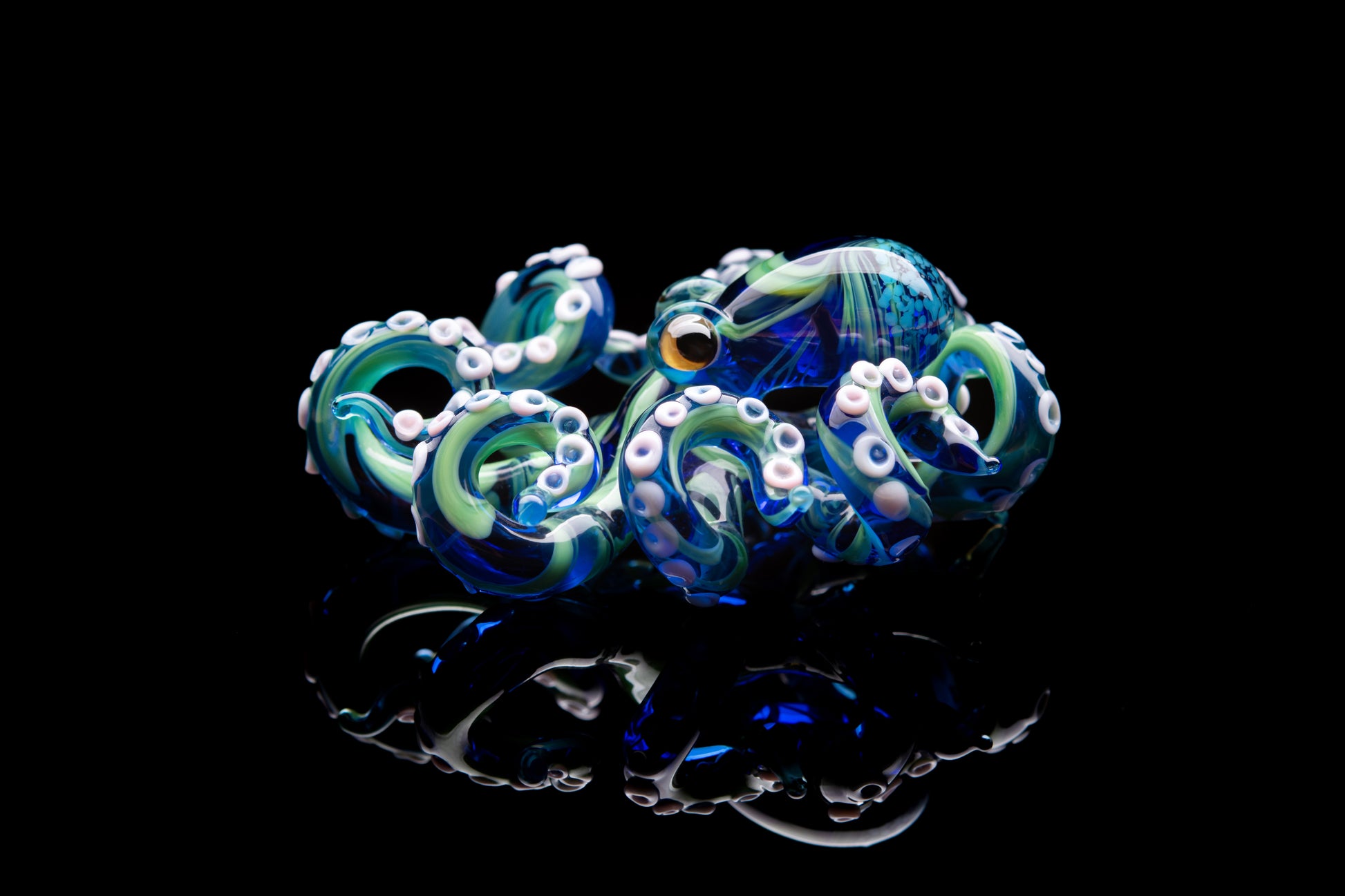 The Blue and Green Octopus pendant blown glass octopus necklace