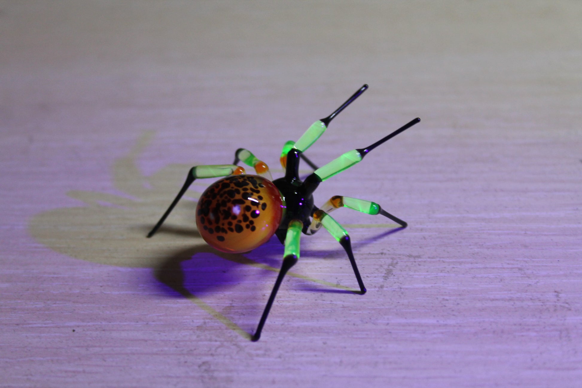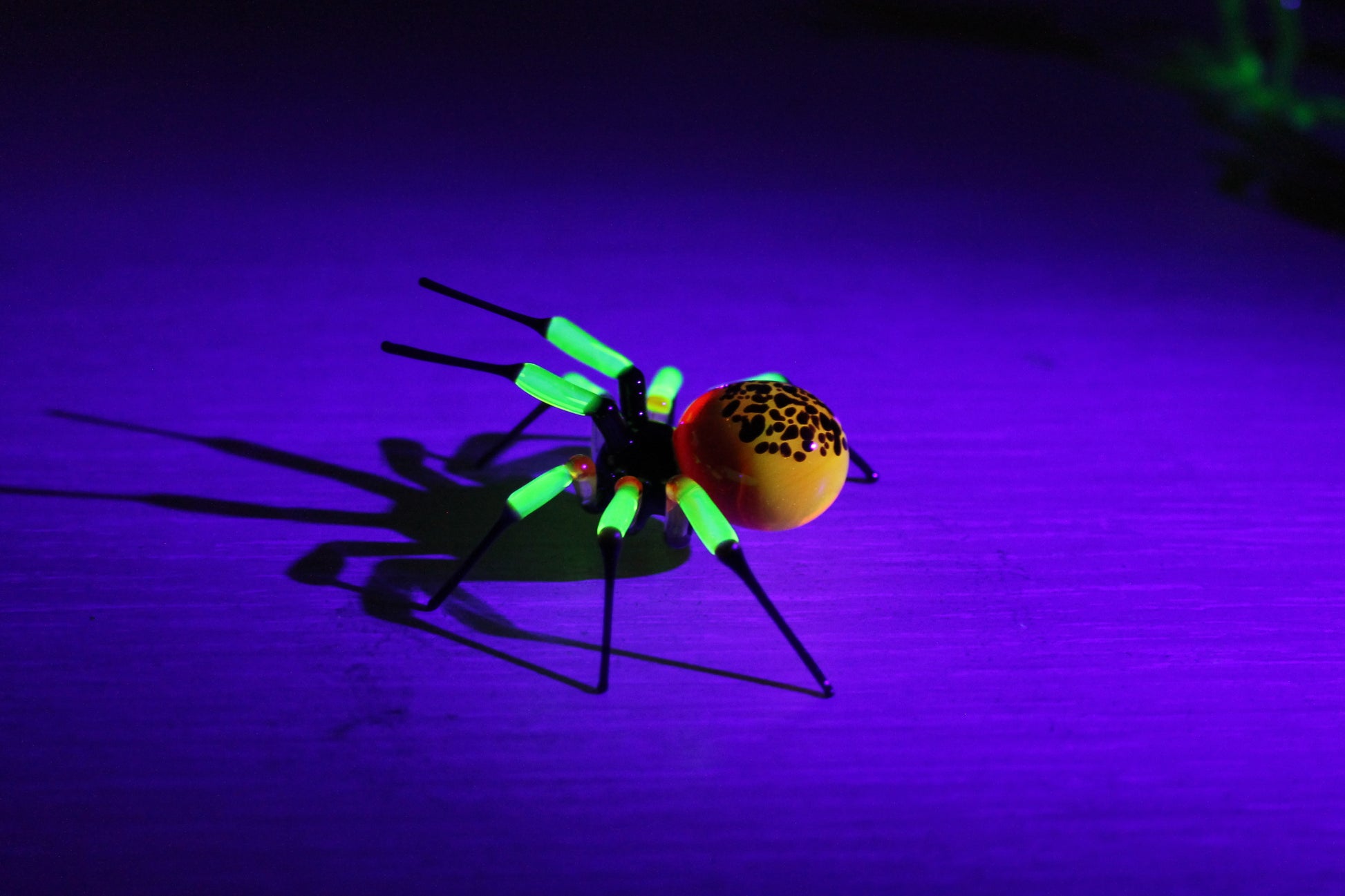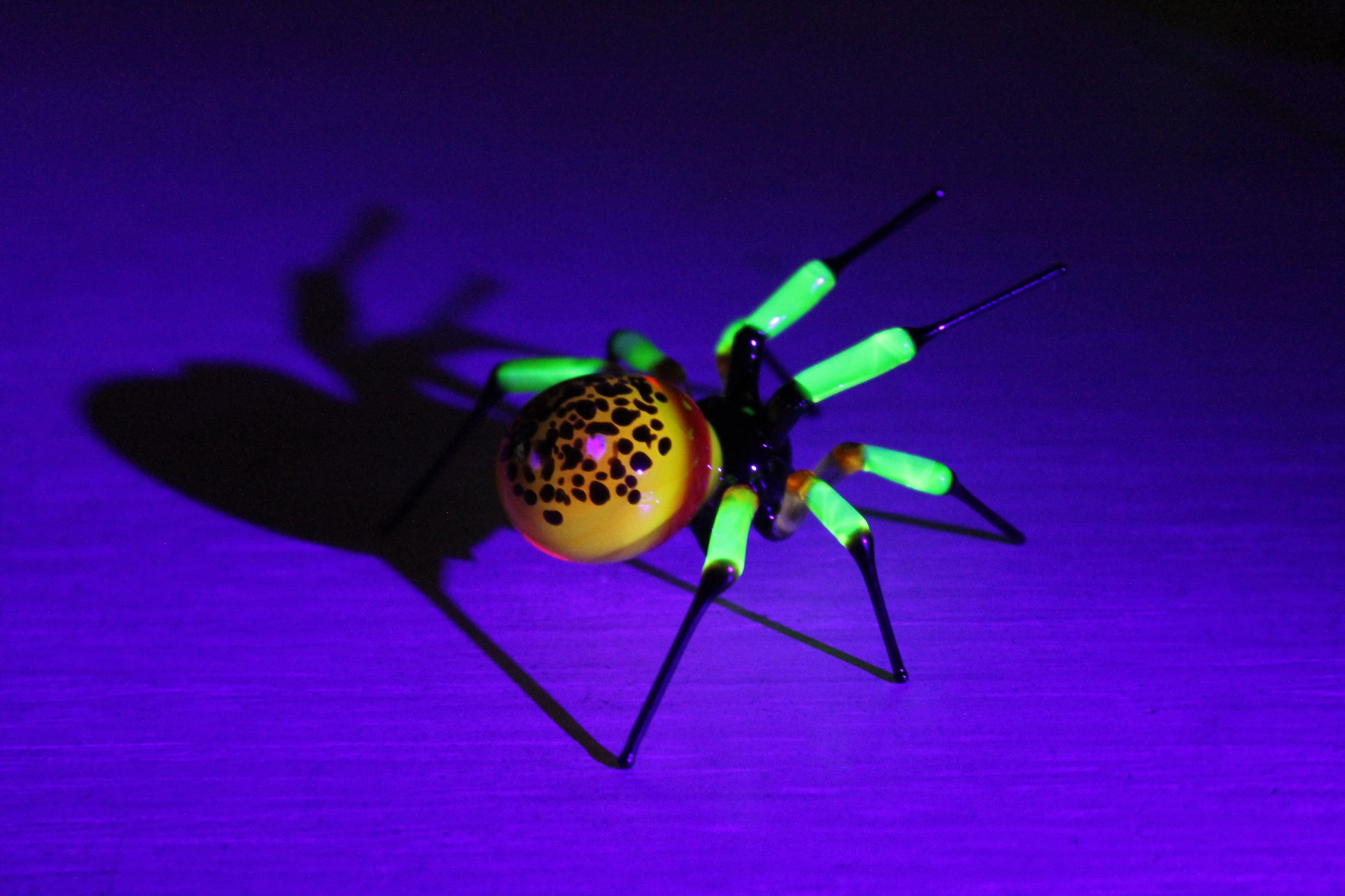 UV Light Reactive Spider – Luminous Yellow-Black Glass Art
